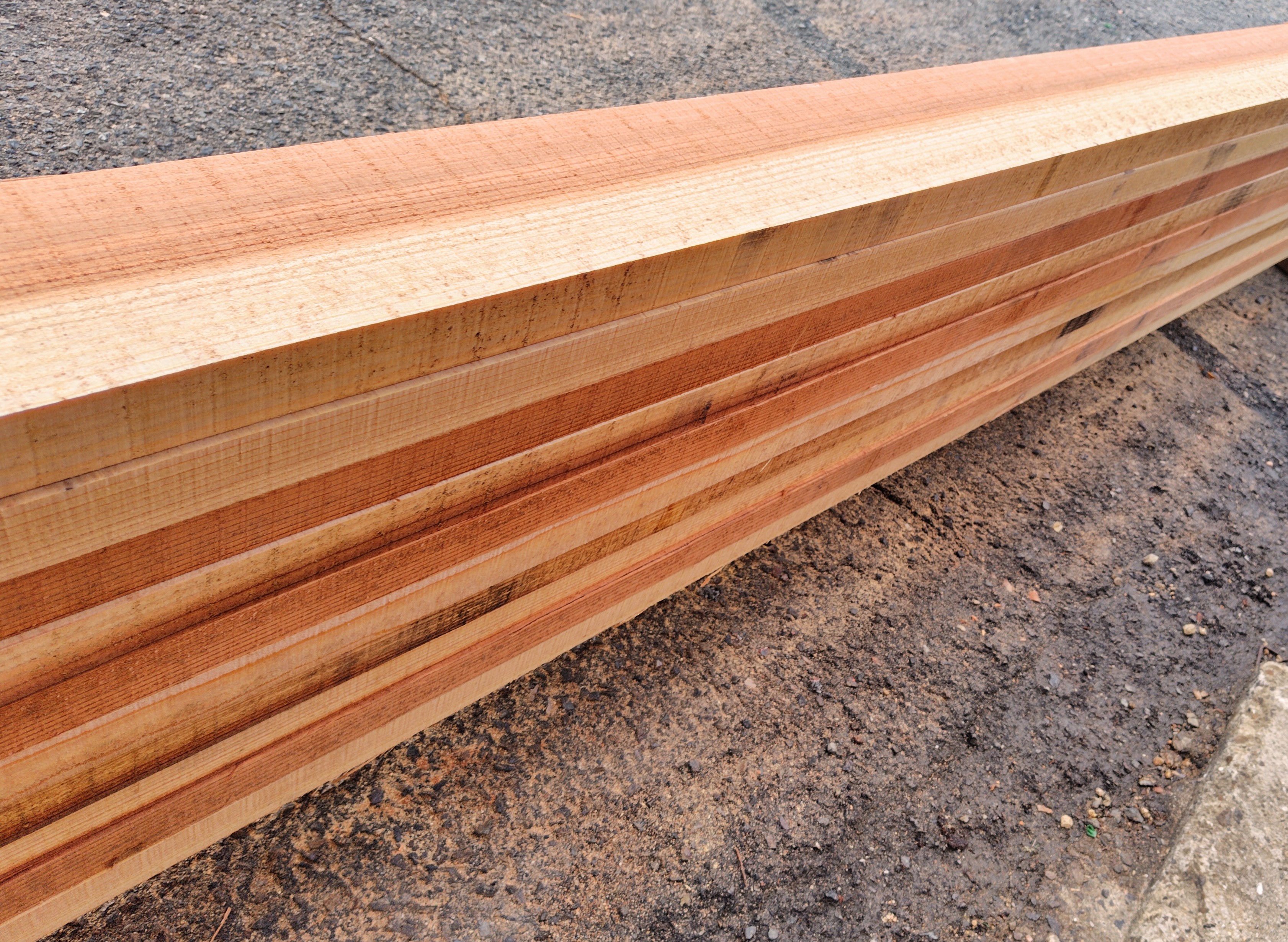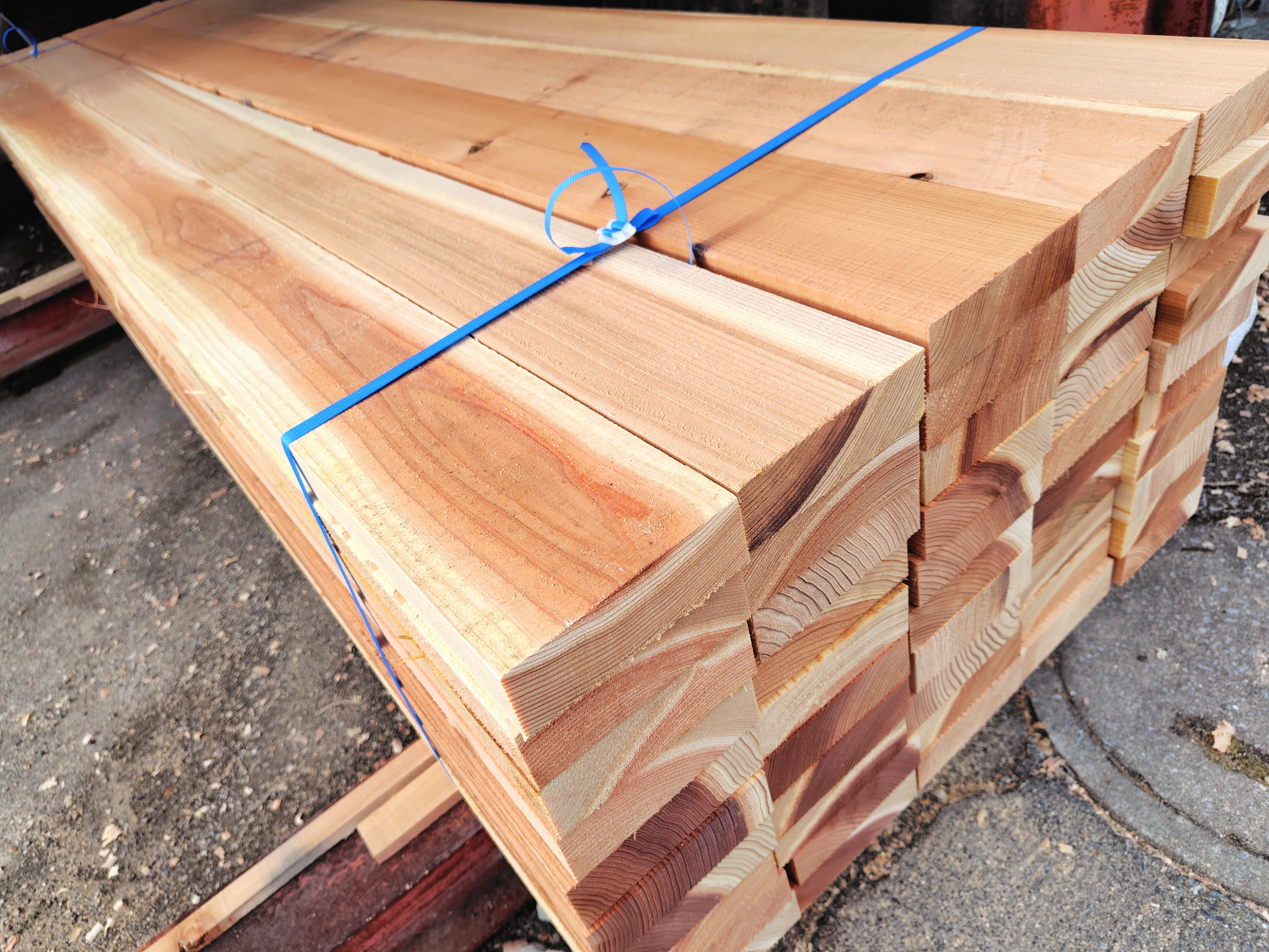 工場もクリスマスで、外部造作用の「杉」も赤身勝ちなクリスマスカラー