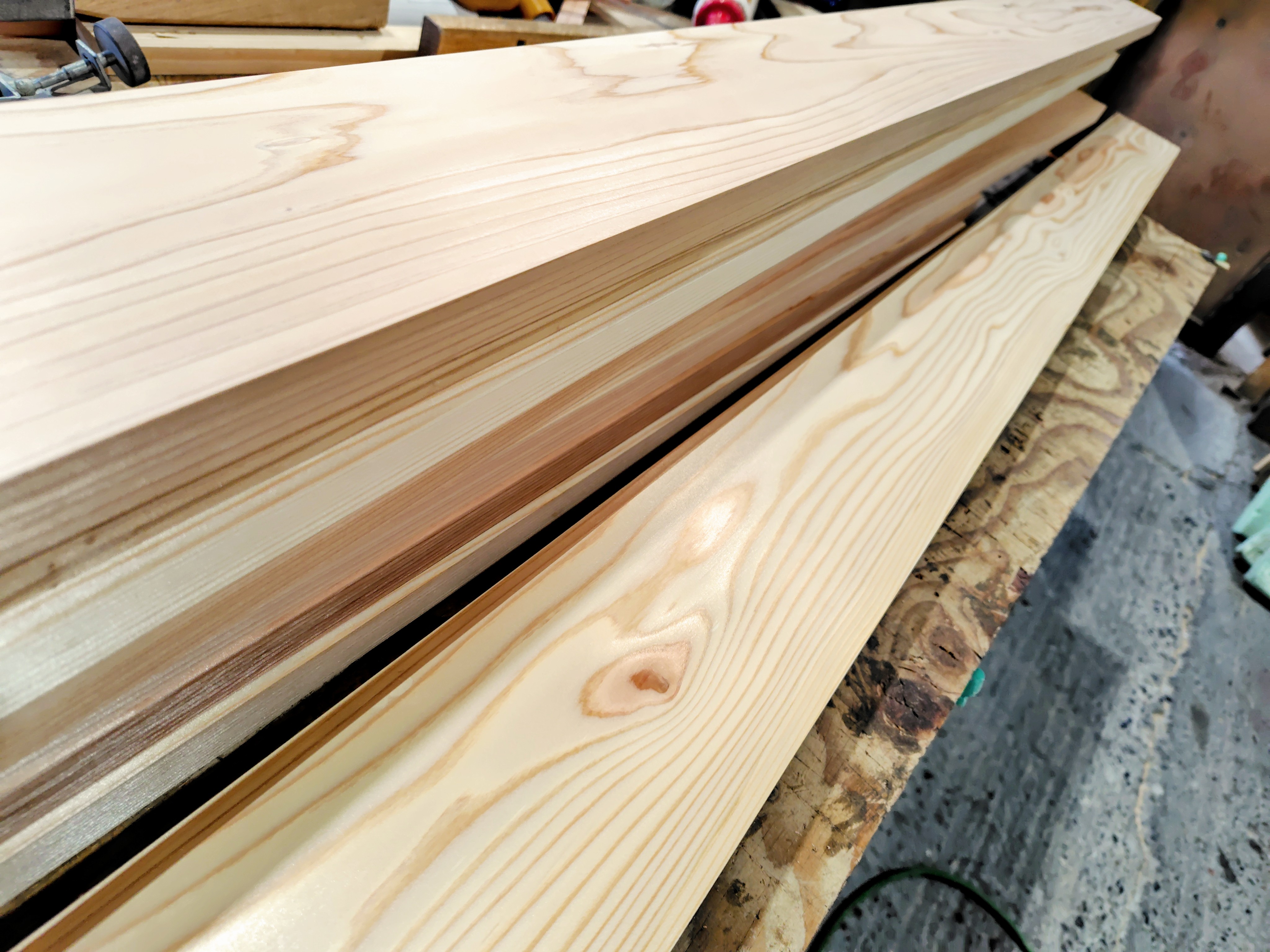 内に秘めた赤い闘志のような「杉」の加工材を発見(`・д『☆』