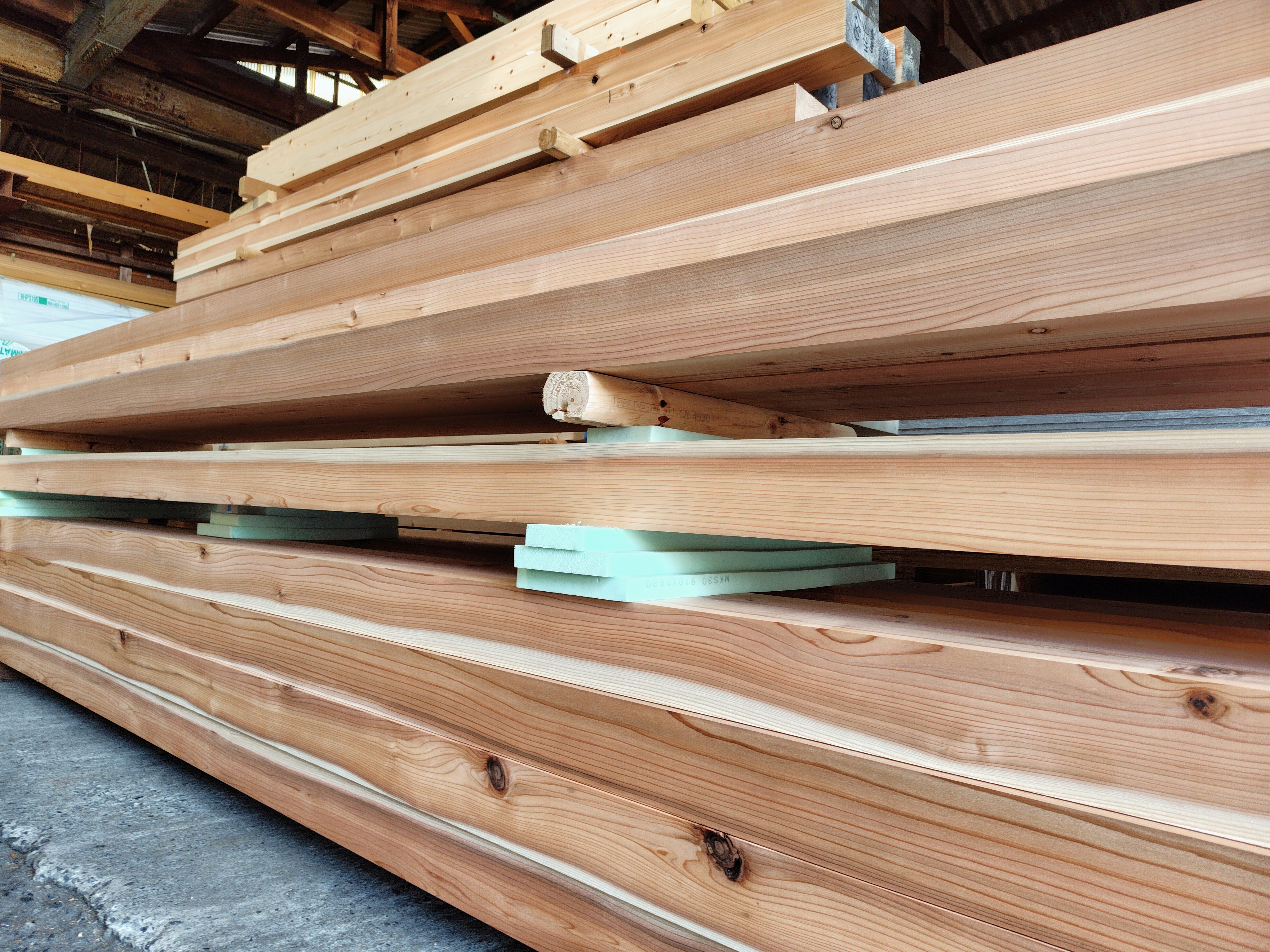 【#1164】 クリスマスカラー 2025年 12月 19日 Fri 管理者 クリスマスが近くなって来たので、私のようについついクリスマスカラーなペンで書いてる方も多いと思いますが(❤︎Ꙭ) 工場もクリスマスで、外部造作用の「杉」も赤身勝ちなクリスマスカラー さらに、クリスマスカラーな梁桁を発見 気づけばあと5日=͟͟͞͞(꒪ᗜ꒪ ‧̣̥̇) プレゼントが間に合わない〜と叫ん出る方も多いのではないでしょうか(๑º ロ º๑) 木材