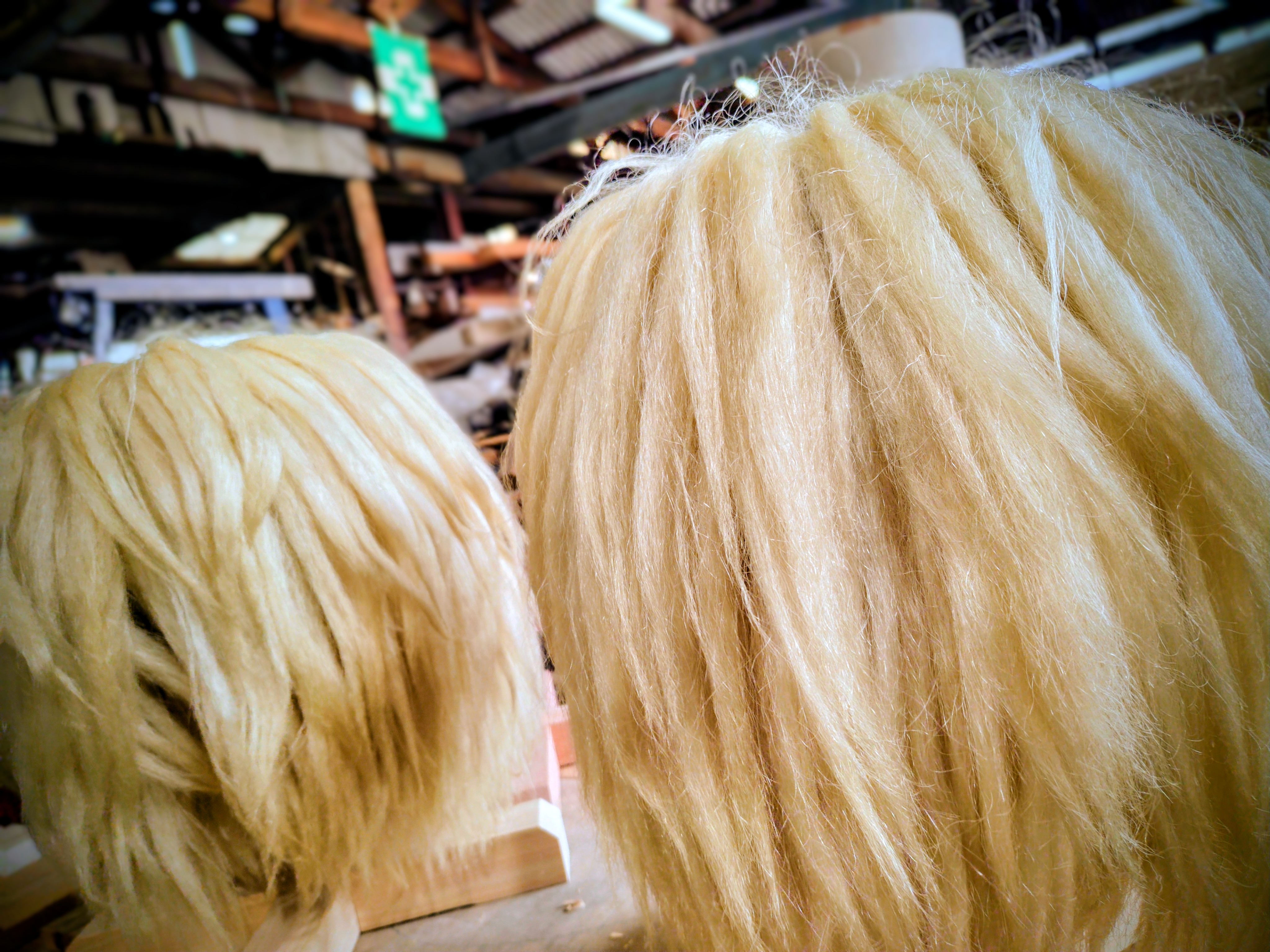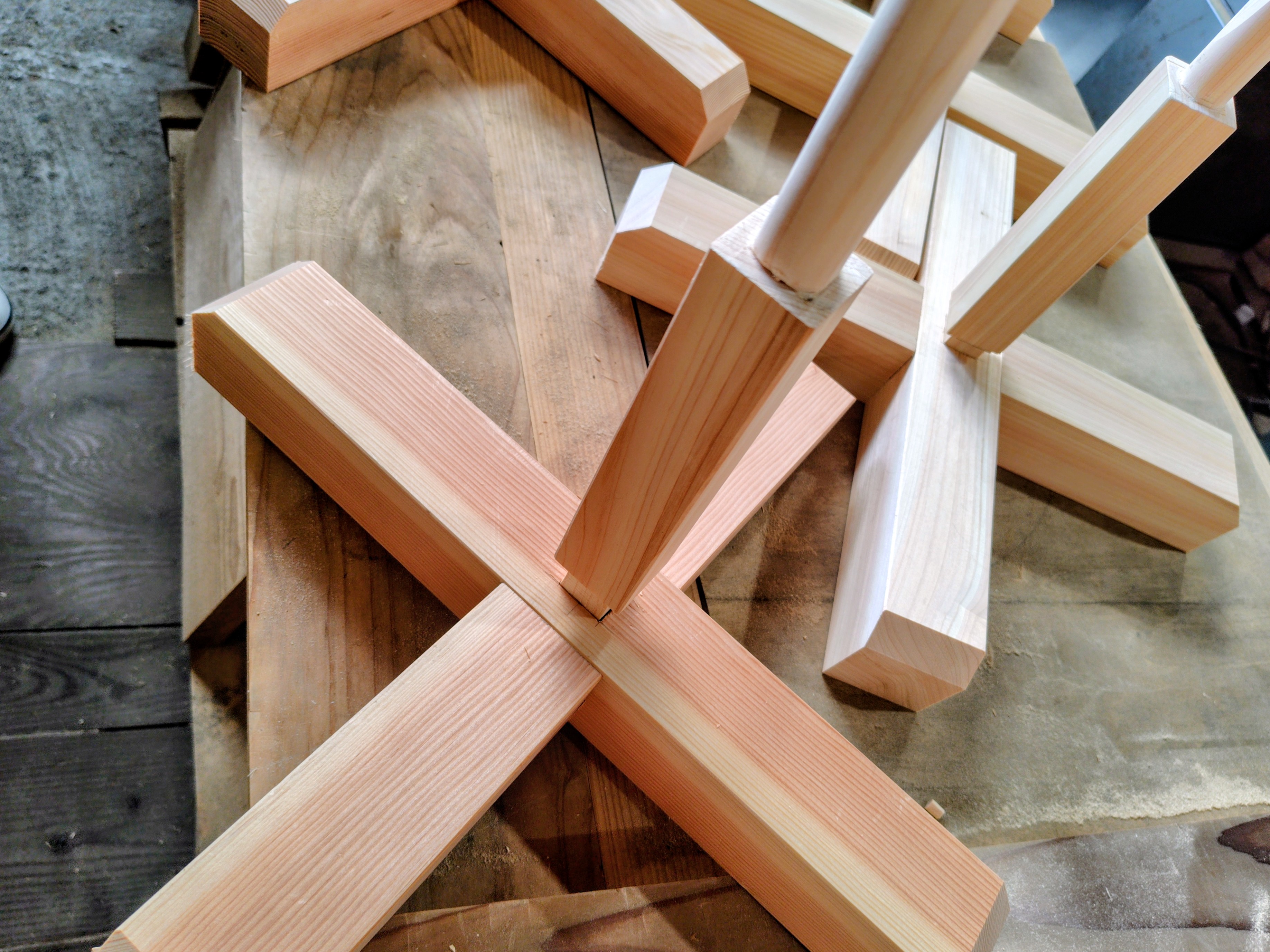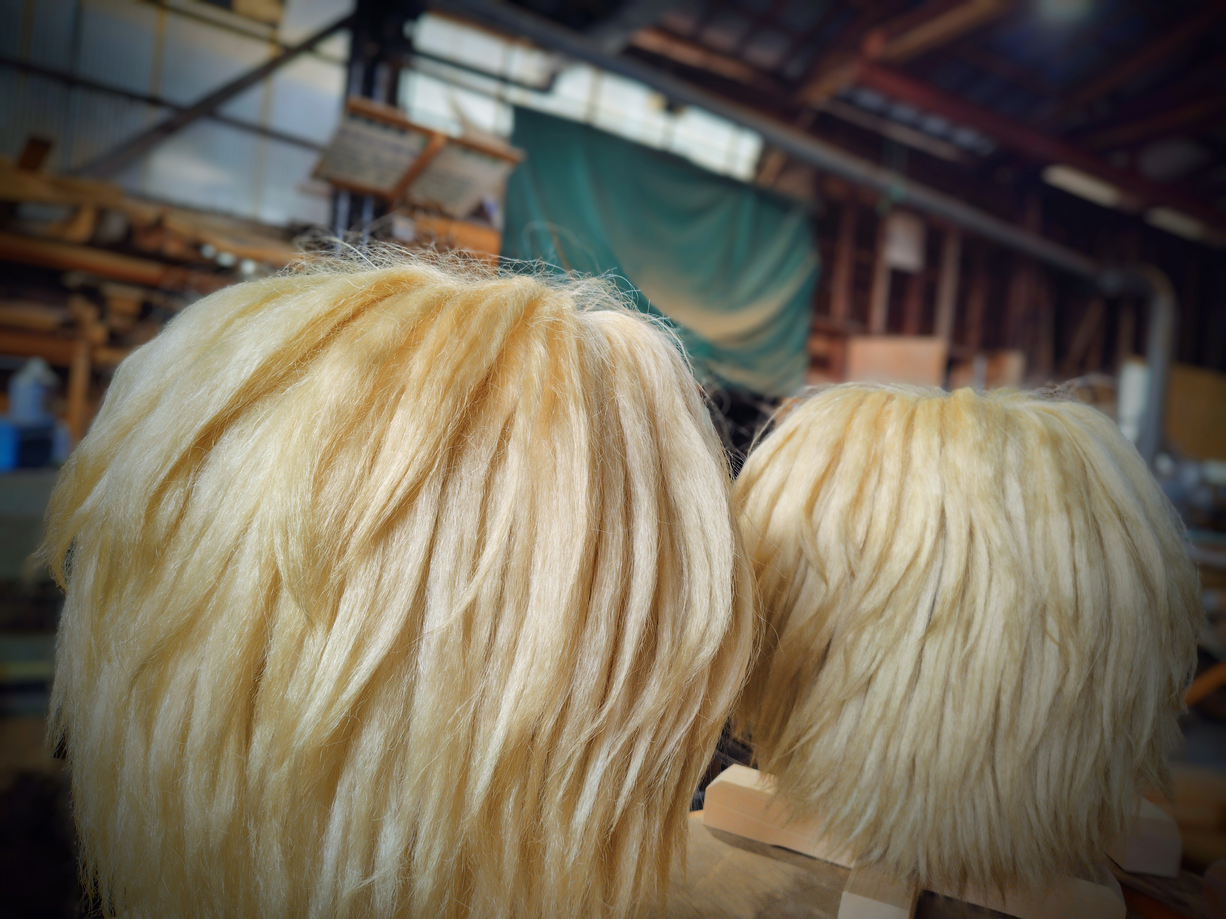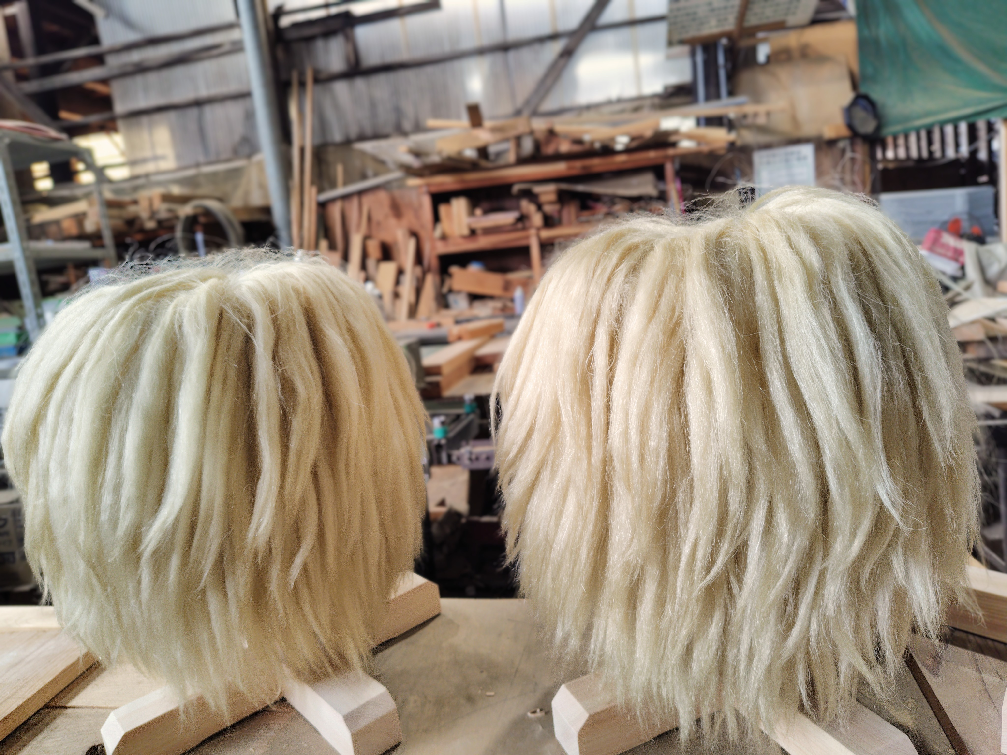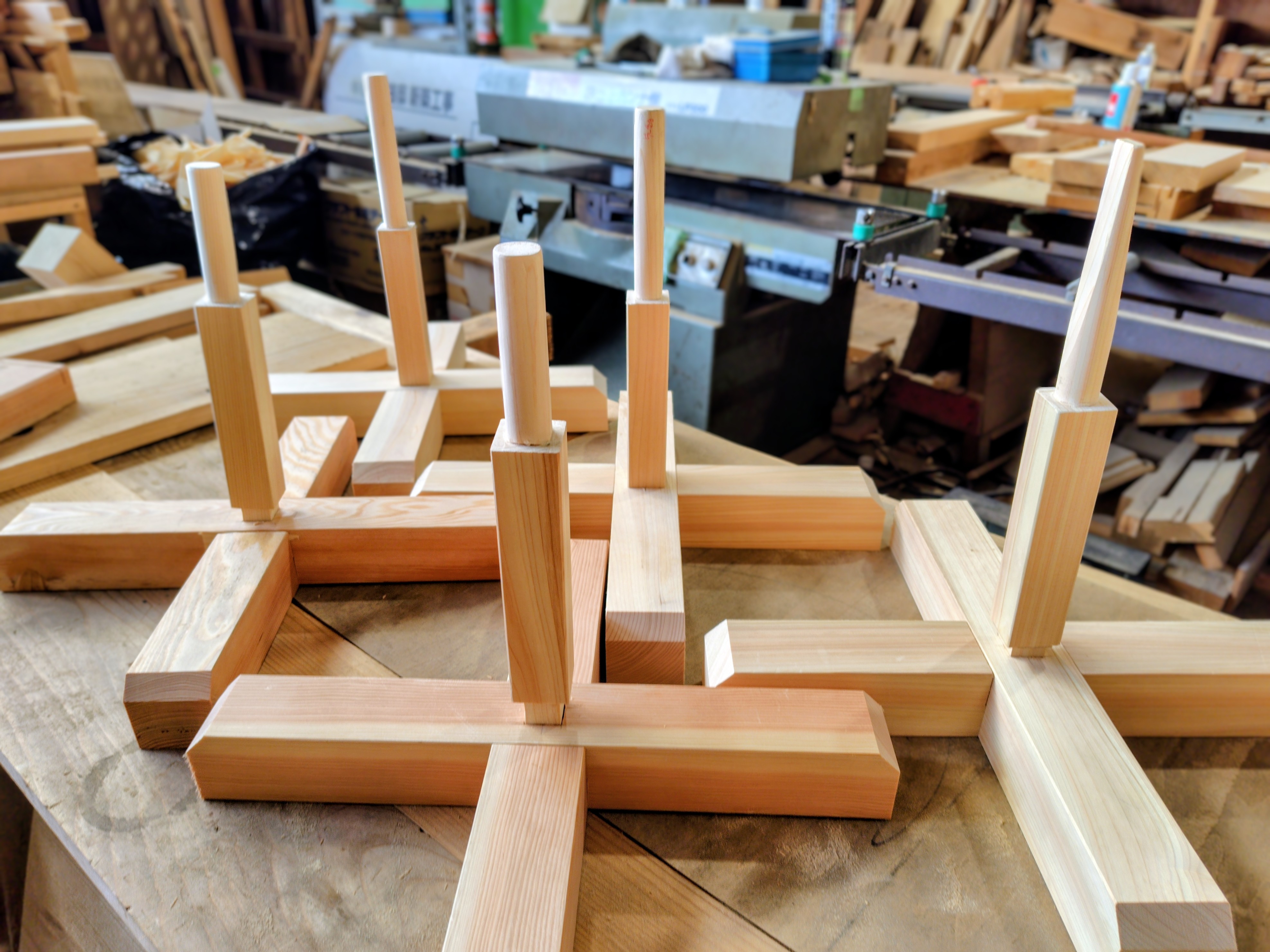 気づかれないように近寄ってみると、“玖波宿本陣入りやっこ” で使われる毛槍の先を保存する台を「桧」と「MATU」で作っているところでした( ˊᵕˋ ; )
